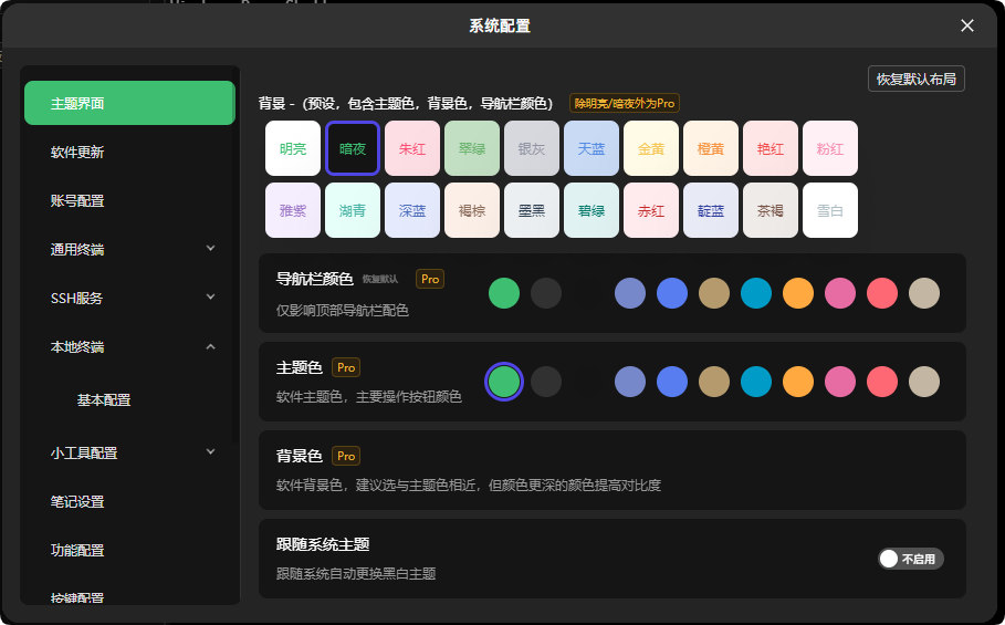 与 SSH 终端共享分屏、主题等功能